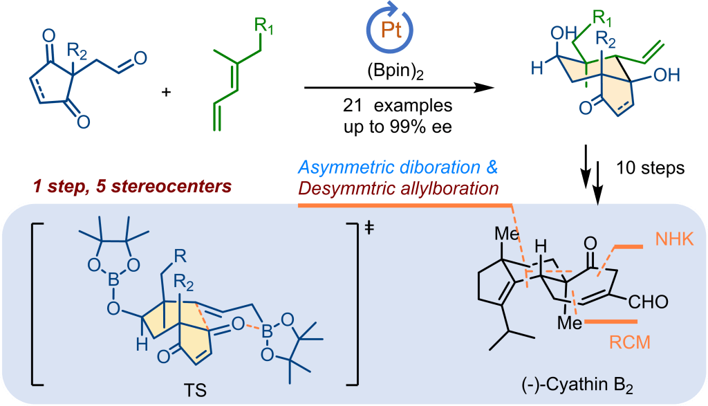 37. Enantioselective Total Synthesis of (−)-Cyathin B2: A Desymmetric Double-Allylboration Approach. Jianping Wang, Jiacheng Yin, Hayatullah Imtiaz, Hongyu Wang and Yun Li* J. Am. Chem. Soc. 2024, 146, 25078-25087